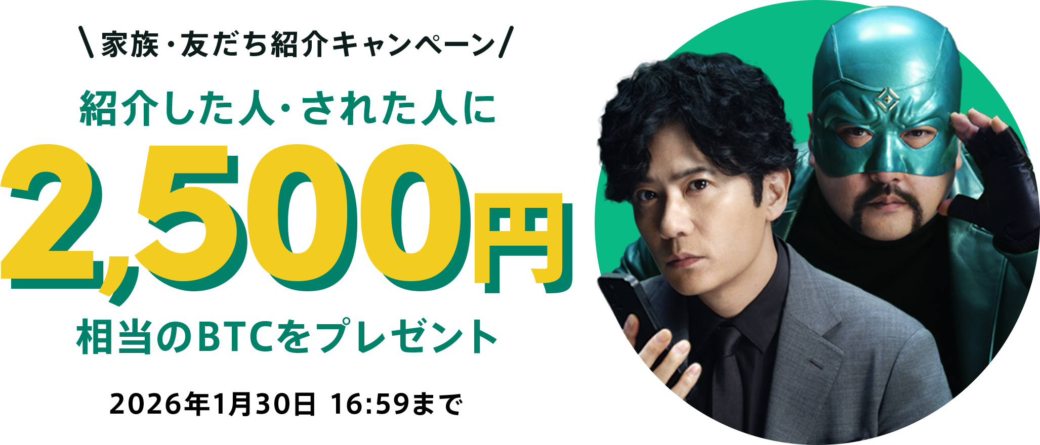 招待URLから口座開設して本人確認を完了させるだけで2,500円相当のBTCがゲットできます!